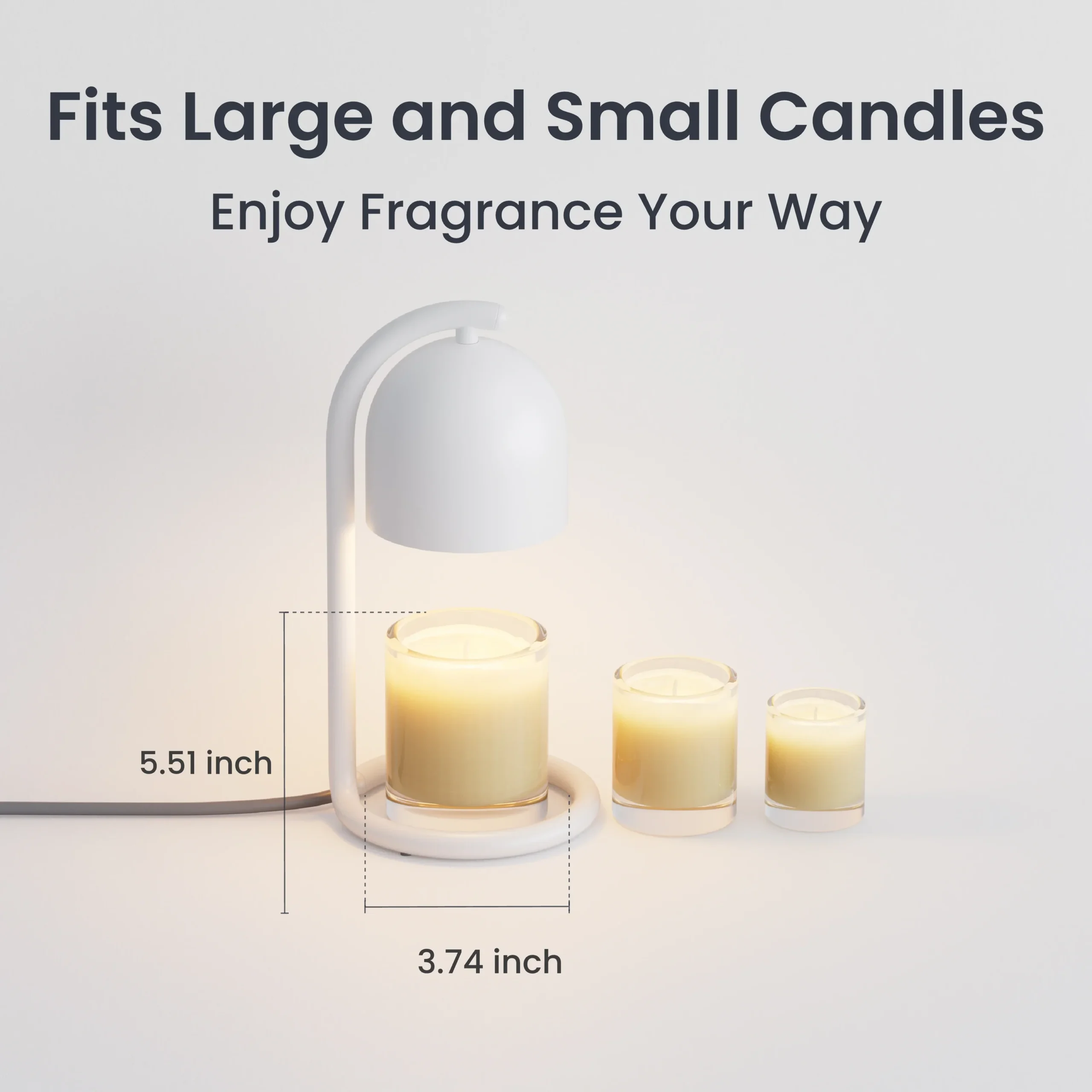 - Universal Candle Compatibility: Fits most candle types and sizes (≤3.74″ diameter × 5.51″ height). Whether it’s soy-based essential oil wax or classic beeswax, this candle warmer lamp melts from the top down for even, smoke-free fragrance release.